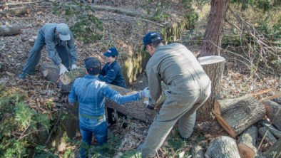 薪狩りの模様 富士山薪ストーブクラブではクラブ会員が協力して薪にする木を調達する作業を行っております。