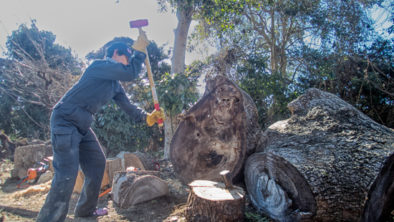 時には立木を倒す作業も行います。