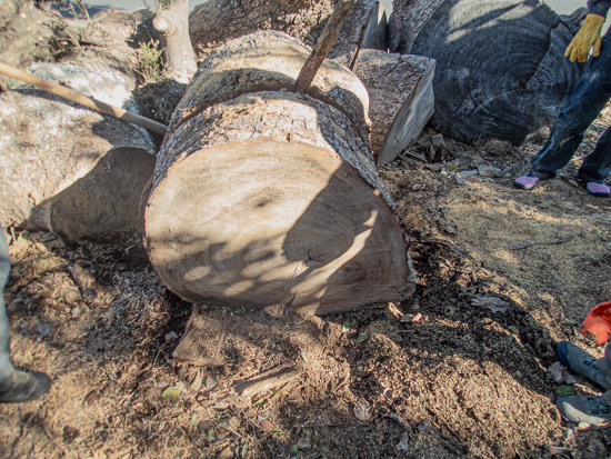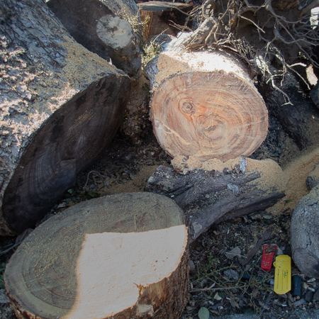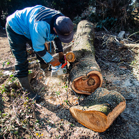 なんせ、太いので地面も掘ったりして、チェンソーが届く様な工夫をしました。