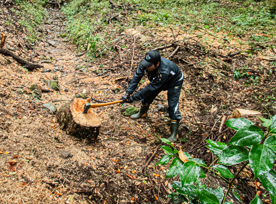 こういう薪狩りもあるので、今後、雨の中で作業することもあるかと思います。