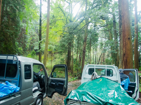 しっかり降られてしまう様な雨の日の薪狩りには、防水用に帽子か、ヘルメットを持って来て下さいネ。
