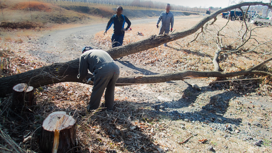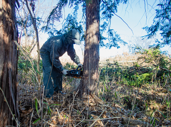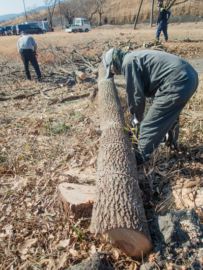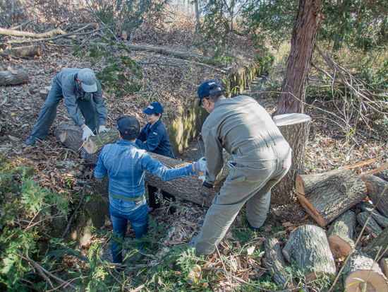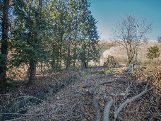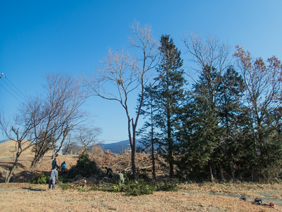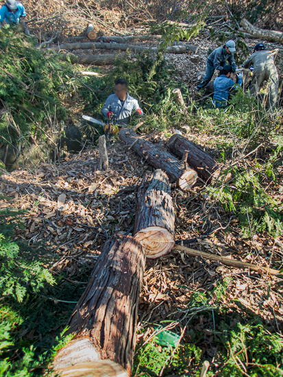 まずは、切った枝や我々が持って帰らない檜を置くスペース作りからスタートです。