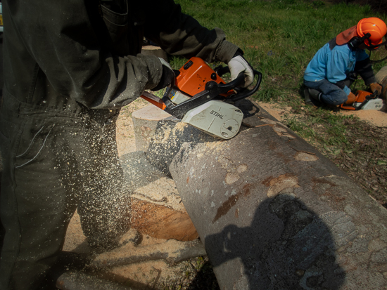 チェーンを研ぎ研ぎでないと、これだけの太い欅を切れないです。