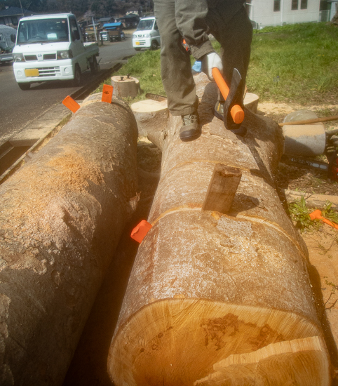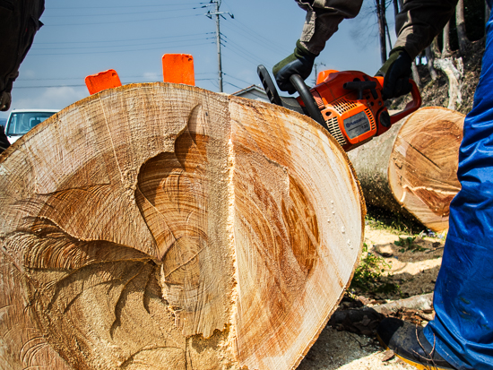 凄い進捗!太い欅をガツンと切りました 裾野市