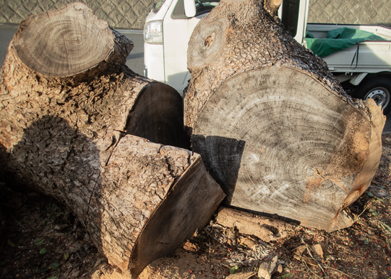 今度の薪狩りでは、下の巨大な楠を切り込んでいきたいと思っています。